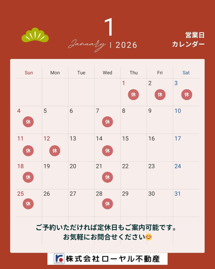 1月の営業日をお知らせいたします🤗