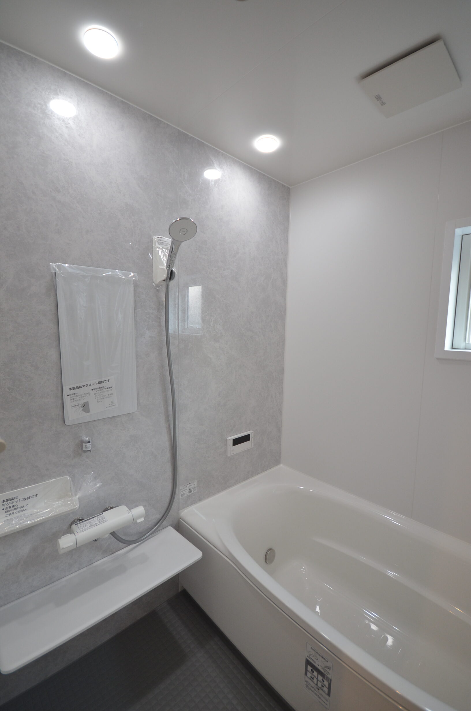 浴室は高級感のある白のパネル。一日の疲れを癒します。