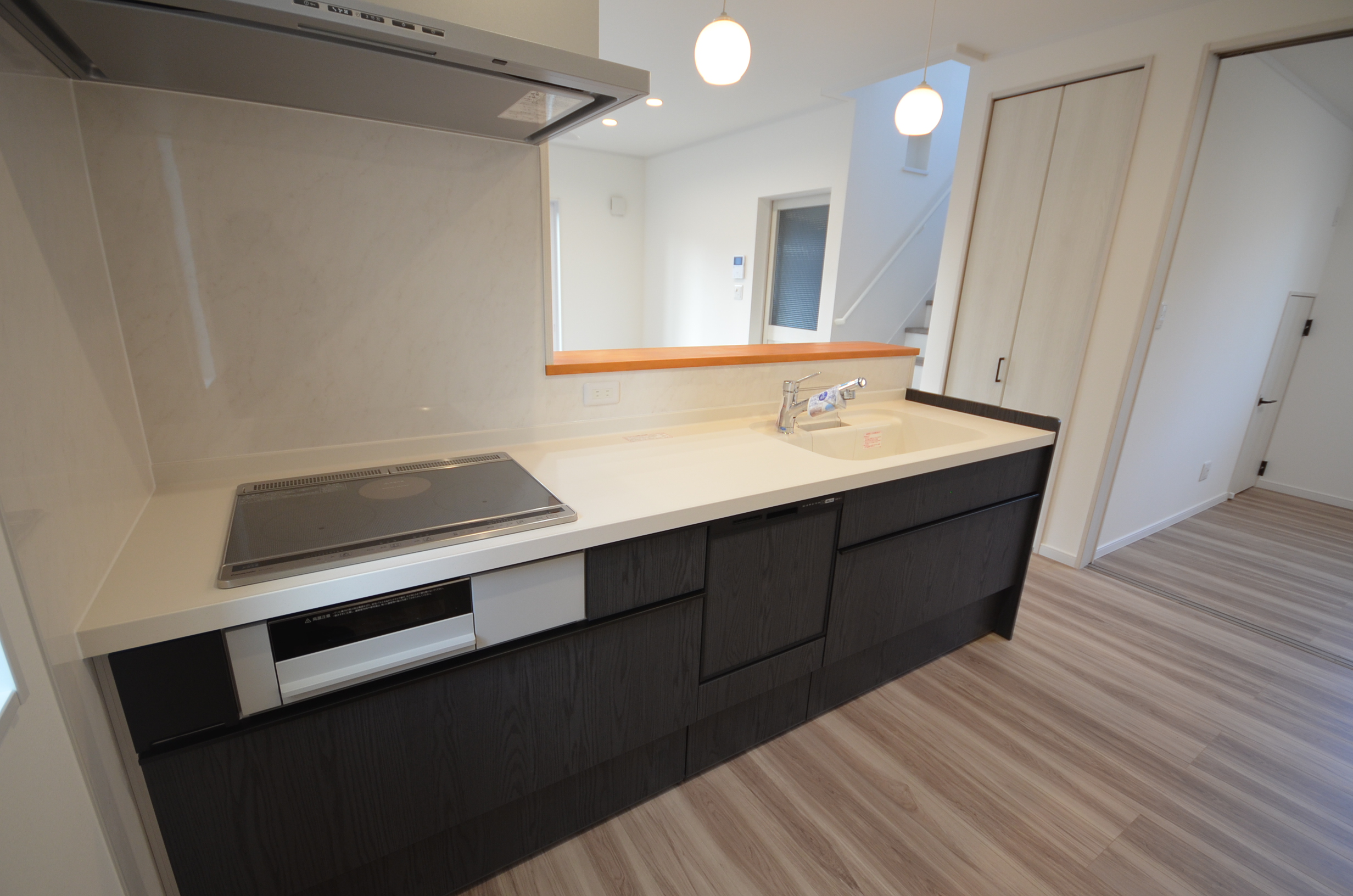 機器類は食洗機・IHクッキングヒーターを採用。掃除のしやすいレンジフードで家事楽を叶えます。
